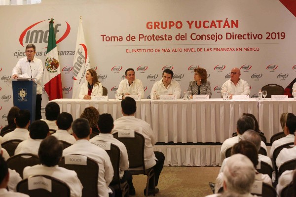En representación del Gobernador Mauricio Vila Dosal, la funcionaria encabezó la toma de protesta del Consejo Directivo del Instituto Mexicano de Ejecutivos de Finanzas (IMEF) grupo Yucatán para el período 2019, donde afirmó que de frente a estos nuevos retos, desde el inicio de gestión estatal se ha trabajado bajo dos importantes premisas: hacer más eficiente el gasto público así como no descuidar los programas y áreas prioritarias, lo que ha permitido realizar acciones para sentar nuevas bases que impulsen el desarrollo en los 106 municipios de la entidad.