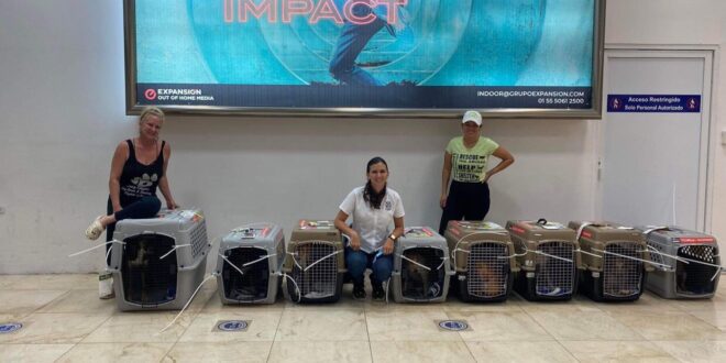Progreso, Yucatán a 25 de enero 2022.- Esta mañana los perritos rescatados por Tracy Ginger en su centro de rehabilitación “Jungle rescue”, emprendieron su viaje a Canadá para ser adoptados, donde la Titular de la Unidad de educación ambiental a cargo de María José Ongay, acompaño a estos animalitos para ser testigo de este gran proyecto.