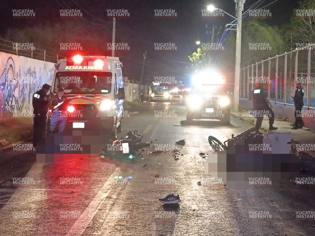 Mérida, Yuc., a 12 de marzo.- Una lamentable tragedia enlutó esta noche a dos familias, pues dos motociclistas perdieron la vida, tras chocar entre sí, en el cruce de la calle 127 entre 70 y 72 de la colonia San Antonio Xluch.