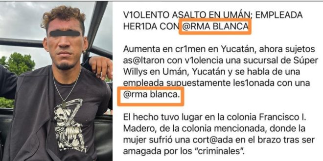UMÁN, Yuc., 07 de enero 2025.- El individuo que esta tarde cometió un robo con violencia en un mini super de la ciudad de Umán, fue detenido hoy mismo tras un operativo conjunto de la Policía Municipal y la Secretaría de Seguridad Pública (SSP) y puesto a disposición de la Fiscalía General del Estado (FGE).
