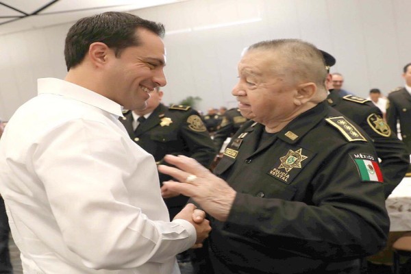 “El clima de seguridad que hoy gozamos en Yucatán es gracias al trabajo, esfuerzo, dedicación de todos ustedes, del sacrificio que hacen sus familias, de su esfuerzo. Esto no es un trabajo que sea de dos meses ni de seis años; ésta es una institución que se ha construido desde hace mucho tiempo atrás y nos damos cuenta con elementos con 40, 30, 25, 20 o 15 años. Esto, refleja que en esta corporación hay gente buena, porque si no fuese así, no veríamos a tantas personas con tantos años y eso es algo que todos debemos de valorar”, remarcó Vila Dosal ante representantes civiles y militares.