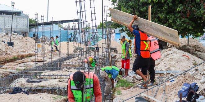 Progreso, Yucatán a 13 de diciembre de 2023. El alcalde Julián Zacarías Curi, acudió ayer a supervisar los trabajos de rehabilitación del conocido parque “Morelos”; en el que en estos días se realiza la cimentación para las gradas del anfiteatro.