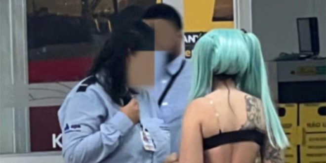 Kine-Chan también crea contenido en Onlyfans y compartió con sus seguidores imágenes de su incidente en el aeropuerto de Navegantes, Brasil.