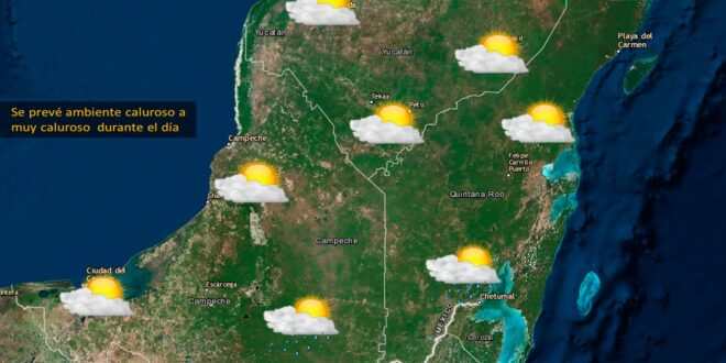 🌦️ ¿Lluvias? Muy bajas probabilidades. Predominará el cielo despejado a parcialmente nublado. Solo se prevé algún chubasco aislado en el sur de la península (límites con Campeche y Q. Roo).