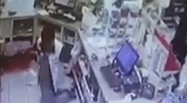 Tres sujetos entran a la tienda, dos de ellos, vestidos de negro amagan al joven identificado como Germán Mauricio.
