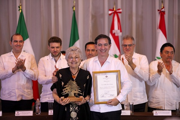 Al referirse a los galardonados, Vila Dosal señaló que estos méritos son remembranza del legado libanés en el estado, que ha dejado huella importante, destacando en esta ocasión la labor de Josefina Mena Abraham, quien durante más de 30 años ha trabajado en el desarrollo de tecnología y metodología de planificación para el reciclaje de desechos domésticos líquidos y sólidos, que involucra la participación social.