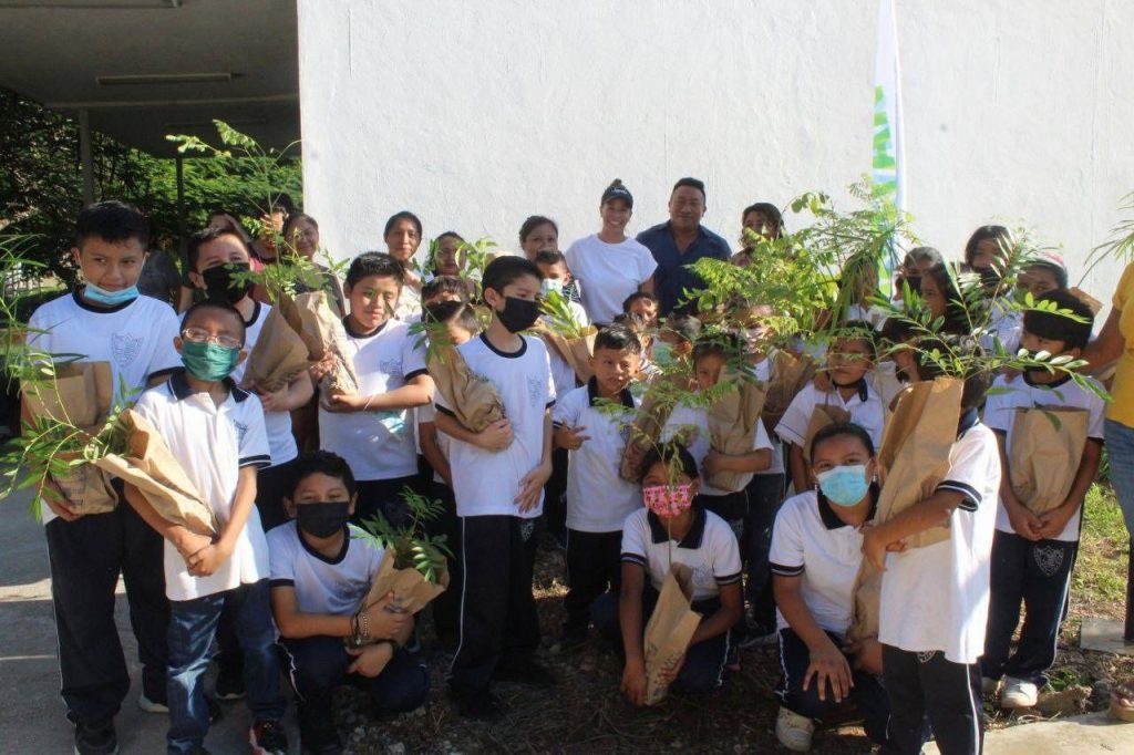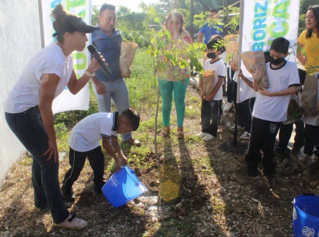 Junto a la directora del plantel, María Isabel Marín Pech, y el comisario de la localidad, Omar Canul Aguilar, la titular de la Secretaría de Desarrollo Sustentable (SDS), Sayda Melina Rodríguez Gómez, aseveró que esta estrategia consta de acciones como la propia reforestación y el cuidado de los árboles que se plantan, pero también de la concientización de su cuidado y la importancia de mantenerlos, pues hacerlo en las escuelas primarias es fundamental, ya que los más pequeños replican estas acciones en casa y en su entorno con familiares, logrando hacer una cadena de valor aún mayor.