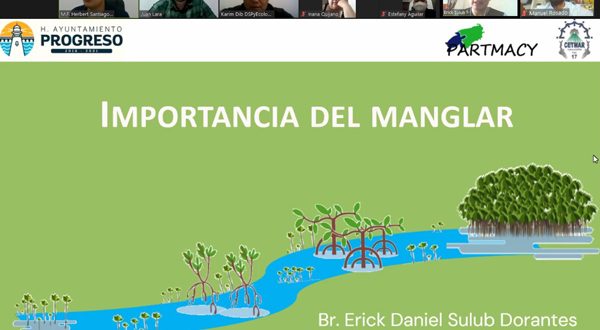 La video conferencia fue impartida por el biólogo marino Juan Lara Rodríguez, responsable del campamento Tortuguero de CETMAR Progreso, quien explicó a los más de 30 participantes la importancia de prevenir la afectación o pérdida de dichos ecosistemas, las instituciones que protegen estos recursos, su función como sistemas naturales de control de inundaciones e incluso los beneficios económicos y turísticos de los manglares.
