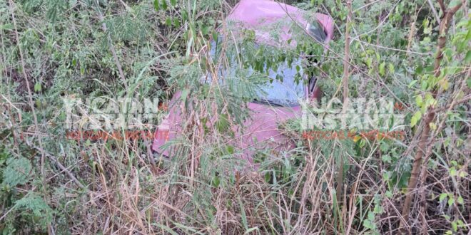 Umán, Yuc., 8 de diciembreb2021.- Un automóvil Nissan Tsuru, acabó dentro los matorrales, luego de que su posible conductor, se orillará apenas en la vía estatal Umán-Samahil, tramo Oxholón-Samahil, la tarde de ayer.