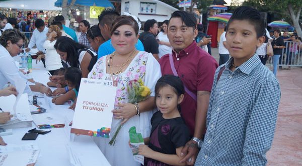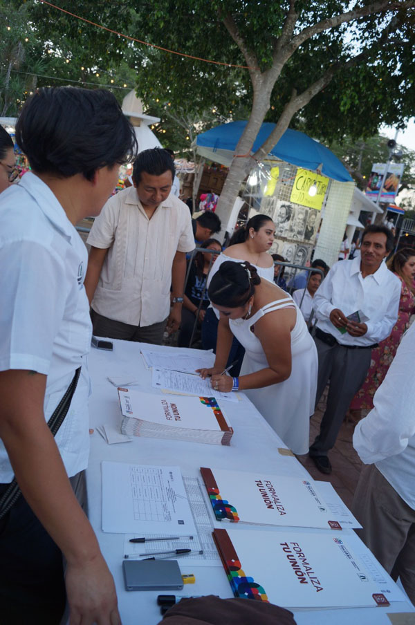 En este sentido, el consejero Jurídico, Mauricio Tappan Silveira, hizo un llamado a la población y a las personas que quieran formalizar su relación de pareja para que acudan al Registro Civil y obtengan los beneficios de este esquema, que contempla una boda colectiva el próximo 29 de noviembre en el recinto ferial de Xmatkuil.
