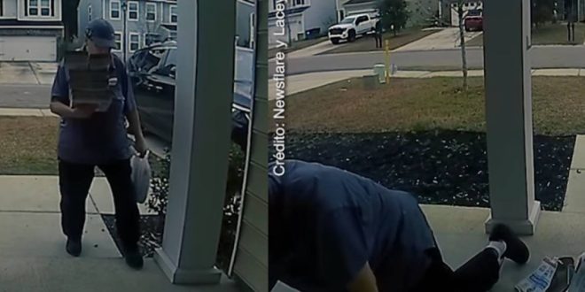La esposa del paramédico compartió en sus redes un video en el que aseguró que pese a la caída la comida había llegado bien y también decidió publicar el video de la caída de Bárbara para ayudarla y crear conciencia.