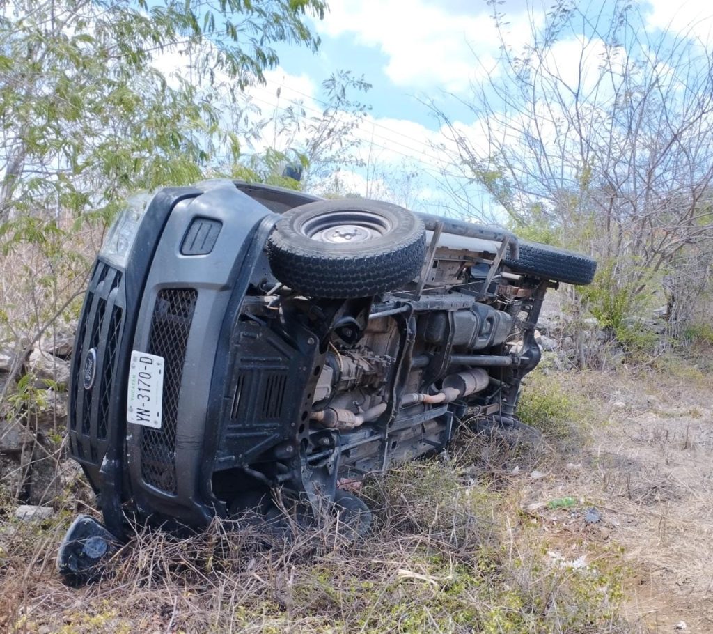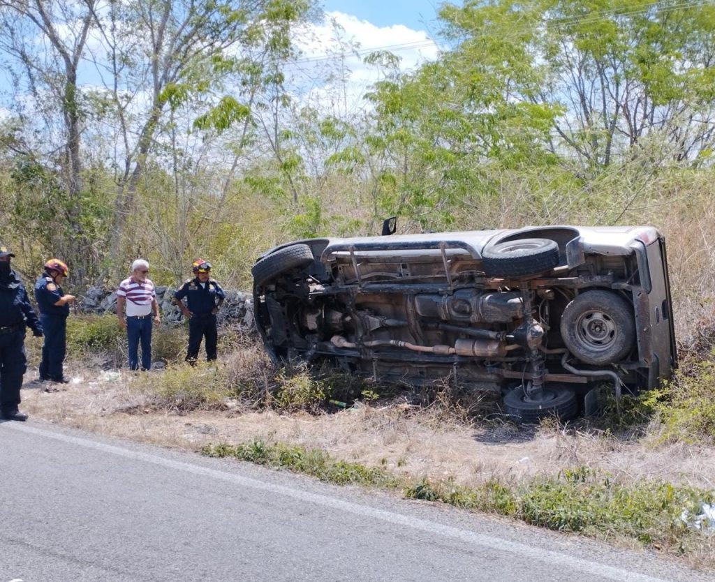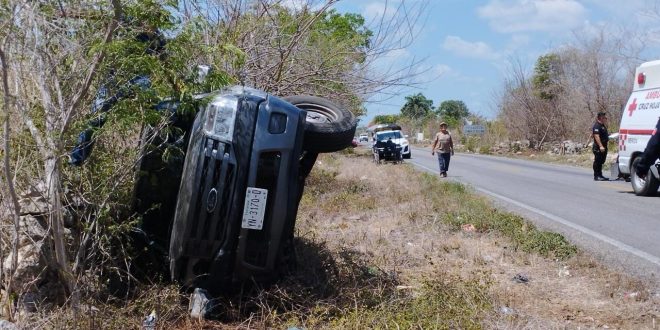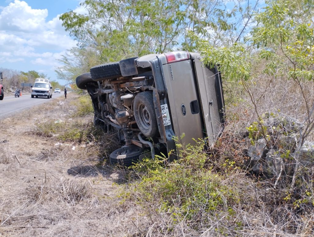 Kinchil, Yuc., a 10 de junio.- Una abuelita que guiaba una camioneta Ford Ranger, termino volcando en la carretera que une este municipio con Tetiz.