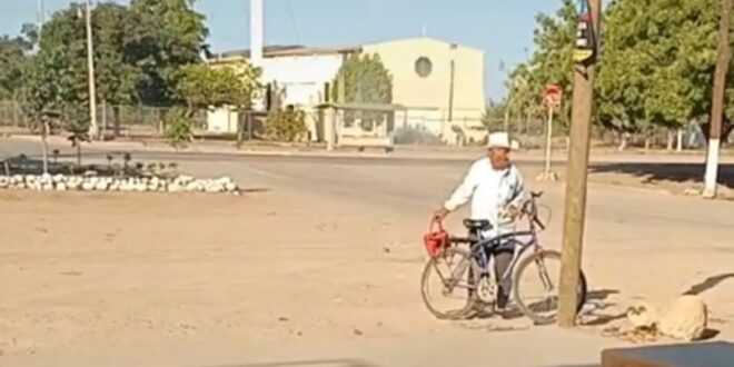 En la grabación, de sólo 16 segundos de duración, se observa el momento en el que el adulto mayor, a bordo de una bicicleta, llega hasta el lugar donde trabaja su nieta para llevarle la comida.
