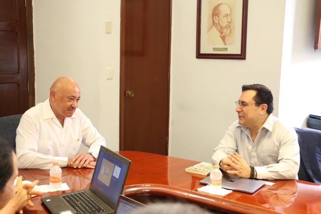 Durante el encuentro, el rector de la UADY José de Jesús Williams compartió con el invitado la estructura de la Universidad, conformada por cinco campus, 15 facultades, tres preparatorias, un centro de investigación, su área administrativa y la Unidad Multidisciplinaria Tizimín.