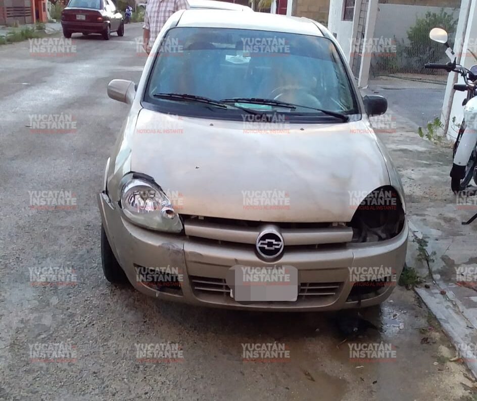 MÉRIDA, Yuc., 03 de junio 2021.- Un accidente de tránsito terminó en persecución en calles de Ciudad Caucel, luego de que una mujer con su vehículo Chevy golpeara a una joven motociclista en plena avenida y posteriormente intentara darse a la fuga.