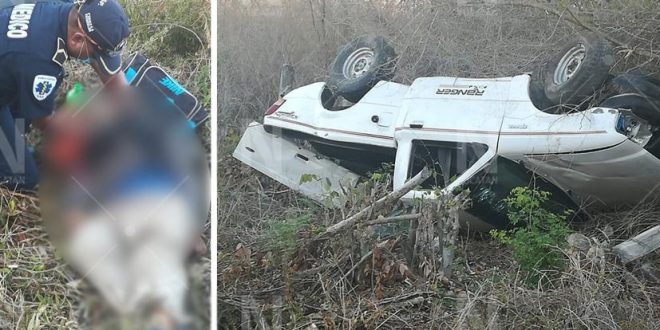 La camioneta se fue hacia su lado derecho, salió del camino y tras dar volteretas quedó volcada sobre su toldo, pero en ese percance, los siete albañiles que estaban en la parte trasera salieron volando y cayeron entre la maleza y piedras.