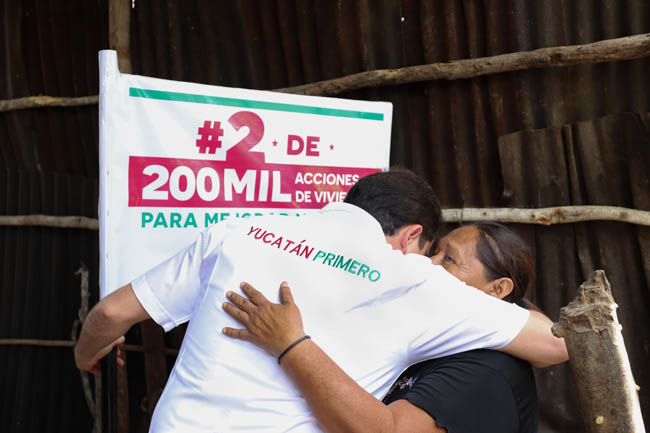 El candidato del PRI, PVEM, Panal a la gubernatura, Mauricio Sahuí Rivero, conoció su historia y refrendó el compromiso de campaña de impulsar 200 mil acciones de vivienda para familias que más lo necesitan.