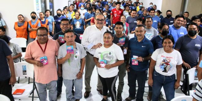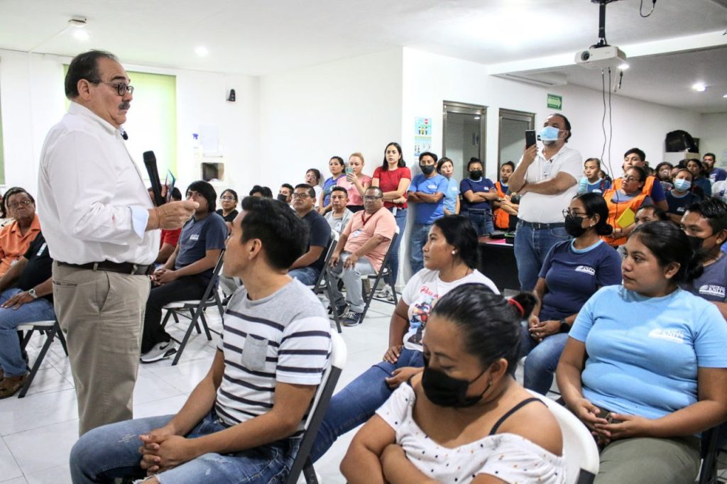 -Jorge Carlos Ramírez Marín visitó la empresa Vertical Knits, ubicada en el municipio de Baca, donde compartió los beneficios que se ofrecen en las Clínicas Wilma Marín