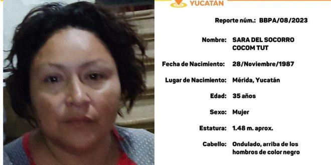 MÉRIDA, Yuc., 27 de mayo 2023.- Este viernes se activó la Alerta Alba para localizar a Sara del Socorro Cocom Tun, desaparecida desde el pasado miércoles 24 de mayo del año en curso.