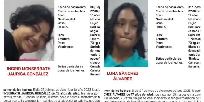 Las jóvenes fueron vistas por última vez en la carretera Mérida-Cancún. Al parecer estaban juntas, aunque las alertas no lo dicen literalmente.