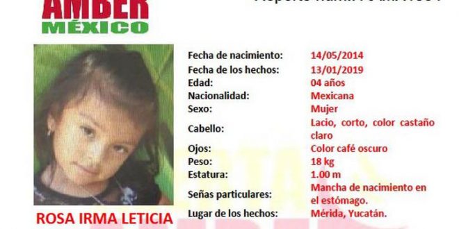 La Alerta Amber Yucatán ha sido activada por la la sustracción de la niña Rosa Irma Leticia López Guzmán, de 4 años.
