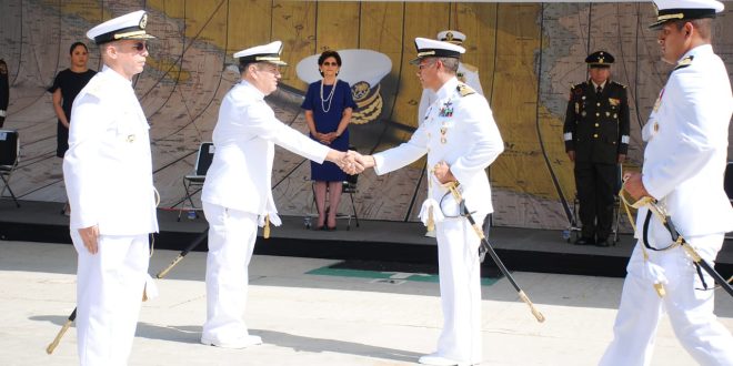 Junto con el almirante Abraham Eloy Caballero Rosas, comandante de la VII Región Naval, de la que depende la XIII zona, la funcionaria atestiguó los honores correspondientes al oficial saliente, el izado de la insignia del entrante y las demás formalidades de la Ordenanza Naval.