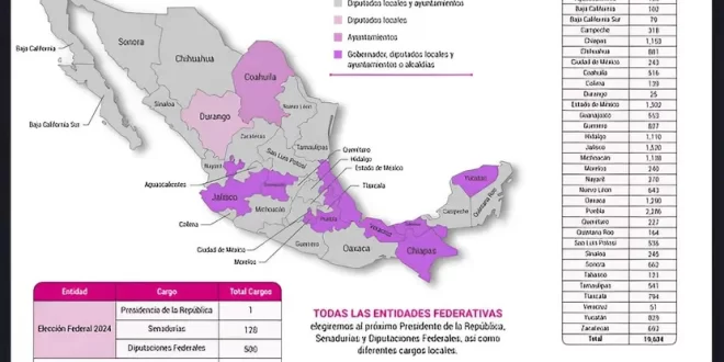 En total, se elegirán 19,634 cargos locales. Destacan las elecciones gubernamentales en estados como Chiapas, Ciudad de México, Guanajuato, Jalisco, Morelos, Puebla, Tabasco, Veracruz y Yucatán
