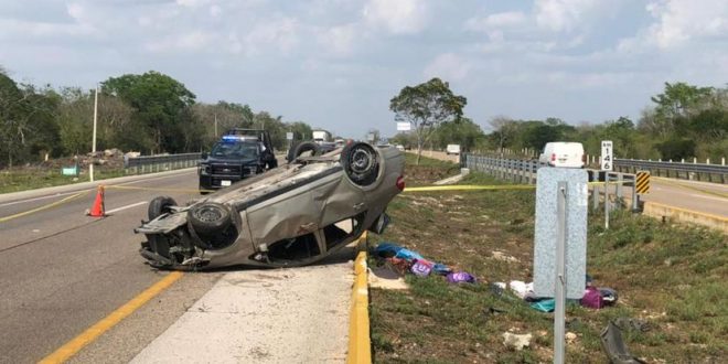 MÉRIDA, Yuc., 23 de abril 2021.-Una adolescente de 15 años murió este jueves luego de un accidente en la carretera Mérida-Campeche, el cual fue generado por el estallido de un neumático.
