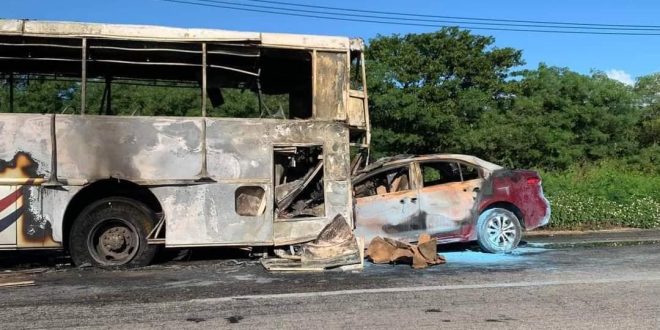 El ahora occiso guiaba un compacto Toyota Corolla y por motivos desconocidos se impactó en la parte posterior de un autobús Noreste, cuyo motor ubica en esta área, hasta incendiarse y alcanzar las llamas el auto que se había incrustado.
