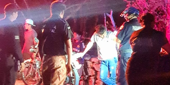 Policías municipales acordonaron el área, para las diligencias de ley y para evitar otro incidente, finalmente fue llevado en una patrulla al módulo 24/7 de este pueblo.