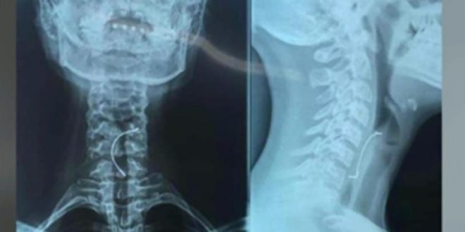 Los padres llevaron a la menor de 15 años de edad a un hospital, donde los médicos le dijeron que el objeto le había perforado la garganta, por lo que de inmediato la intervinieron quirúrgicamente.