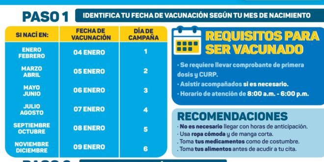 Se reitera que, no se estará aplicando vacunas a quienes no cumplan con los requisitos, por lo que se invita a no acudir sino cuentan con la documentación porque no serán vacunados.