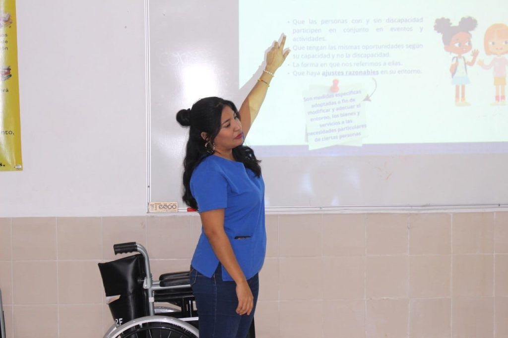 La plática fue impartida por Jesús Campos Hernández , integrante de la Coordinación de Inclusión para las Personas con Discapacidad. Durante el mes de febrero, se visitarán las siguientes secundarias: Federal No. 6 “José Esquivel Pren”, Federal No. 5 “Alfredo Barrera Vázquez” y la Estatal “22 de Febrero CROC”.