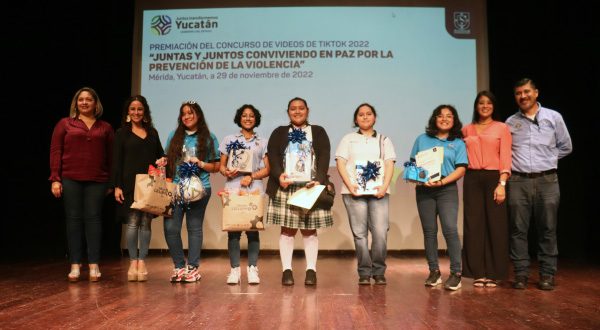 Mérida, Yucatán, 30 de noviembre de 2022.- Pilar Rangel Bermúdez, Briana Salinas Ávalos y Vanessa Yunuenh Lovera Aguilar, de Mérida, ocuparon los primeros tres lugares del concurso de videos “Juntas y juntos conviviendo en paz por la prevención de la violencia”, que promueve el Gobernador Mauricio Vila Dosal, a través del Sistema para el Desarrollo Integral de la Familia (DIF).