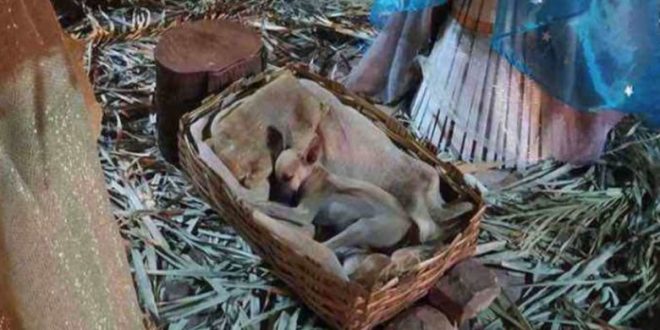 “El pesebre es parte de la decoración navideña de la ciudad que aún está por terminar (…) Cuando fuimos a ver la cuna nos encontramos con un cachorro durmiendo en el pesebre. Una imagen muy bonita, sobre todo para los cristianos”, declaró la mujer ante un medio local.