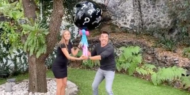 La pareja compartió la feliz noticia en sus redes sociales con un video en el que se ven los dos en un jardín sosteniendo un globo negro con muchos signos de interrogación y otros miniglobos de color azul y rosa; al romperlo, cientos de papeles rosas vuelan, y tanto Uribe como Martin celebran con saltos, abrazos y un tierno beso.