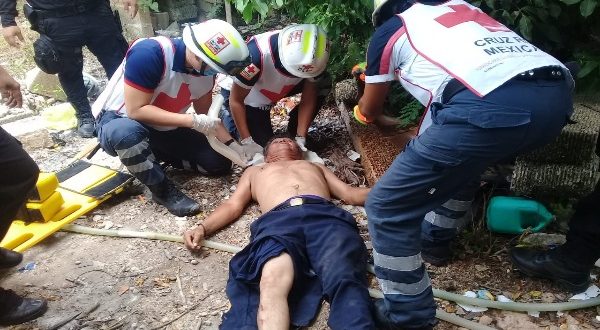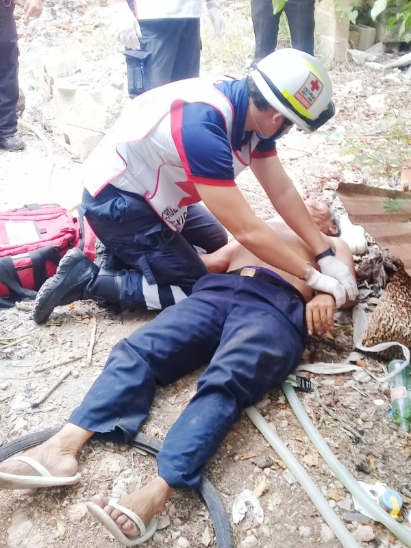 Más tarde arribaron paramédicos de la ambulancia de la Cruz Roja (Yuc-008), para auxiliar al viejito policontundido e ingresar al nosocomio del IMSS en Umán. Por suerte el abuelo no presento fracturas, pero se quejaba de fuertes golpes en la espalda, incluso le pusieron su collarín.