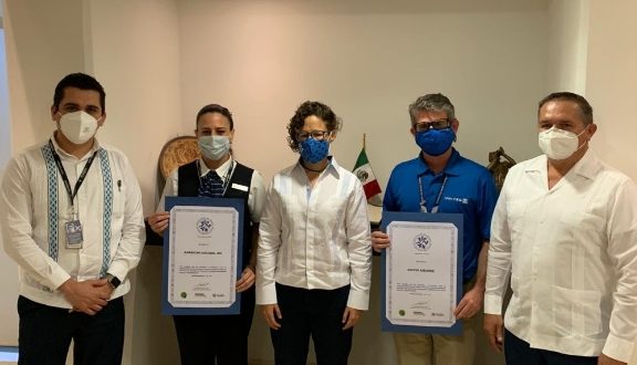 Tras un proceso de homologación de protocolos dentro del Programa de Buenas Prácticas Sanitarias Yucatán, implementado por la Sefotur, American Airlines y United Airlines recibieron de manos de la titular de la dependencia, Michelle Fridman Hirsch, el certificado correspondiente.