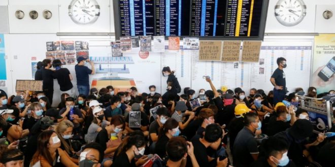 El aeropuerto de Hong Kong reanudó sus operaciones este martes, un día después de que se cancelaran todos los vuelos cuando miles de manifestantes prodemocracia invadieron la zona de llegadas, mientras las autoridades chinas subían el tono respecto a las protestas.