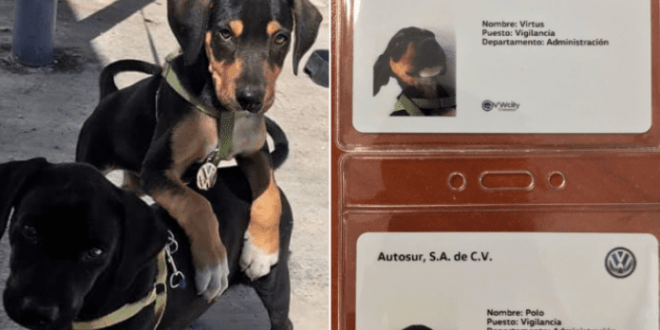 Cada can cuenta con su credencial con foto, firma y laboran para la empresa Autosur S.A. de C.V., desde el pasado 2 de febrero, y junto a la publicación también en Facebook le dedica el siguiente mensaje de bienvenida: “Nos enorgullece presentarles a nuestros nuevos colaboradores”. Información debate.com.mx