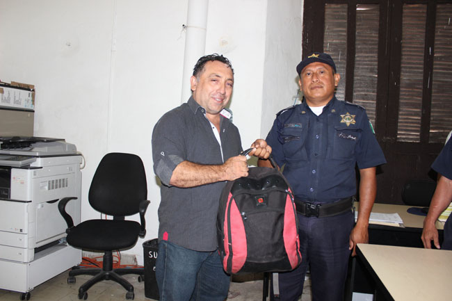 En las oficinas de la Policía Municipal de Mérida, Santana Fraga recibió la mochila y una vez que constató su contenido y demostró su procedencia, agradeció la acción a la corporación municipal.