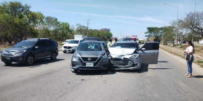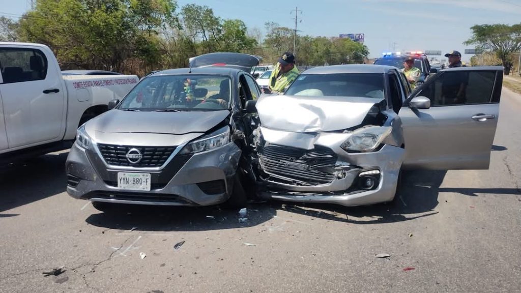 El primer percance ocurrió a la altura del kilómetro 37, en las inmediaciones del puente de Dzityá, donde dos vehículos compactos colisionaron en la vía lateral. Según los primeros informes, uno de los conductores habría invadido el carril contrario, provocando el impacto.