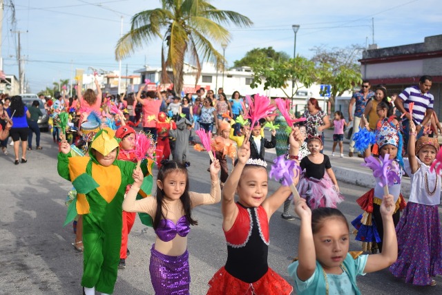 Este desfile inició en el parque de “La Madre” y concluyó en el Palacio Municipal; ahí, reyes de las escuelas participantes alegraron la tarde presentando sus respectivas comparsas, como el de la Maniobras Marítimas, con “Carnaval Caribeño 2019” a cargo de sus Reyes Infantiles Dayana Maydu Pérez, del cuarto grado, y Rafael Cervantes Ramírez, del tercer grado, así como princesa, Ángeles Dayana Galera, del sexto grado de primaria.