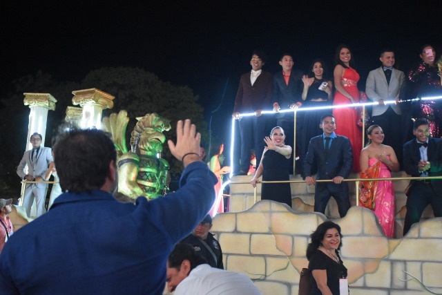 Al pasar por Palacio Municipal, el alcalde Julián Zacarías Curi, acompañado de su esposa, la Presidenta Honoraria del DIF, Alma Rosa Gutiérrez Novelo así como regidores, saludaron a los niños, jóvenes y adultos que serán los encargados de avivar sanamente el ambiente del carnaval.