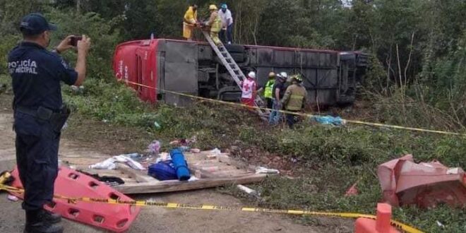 MÉRIDA, Yuc., 06 de febrero 2022.- Trágico domingo, luego de que un camión de pasajeros de ADO volcara esta mañana y dejara al menos 8 muertos entre ellos bebés y 20 personas lesionadas.