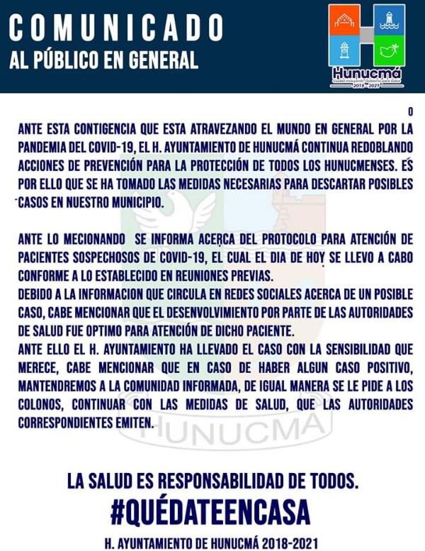 Por su parte la Comuna informó que el personal de salud encargado de atender estos casos llevaron a cabo los protocolos y dijo que manejarán con sensibilidad este hecho, siendo ellos los mismo de comunicar si resulta positivo. Insistió en que los ciudadanos acaten las medidas sanitarias ante esta pandemia del coronavirus, entre otras.