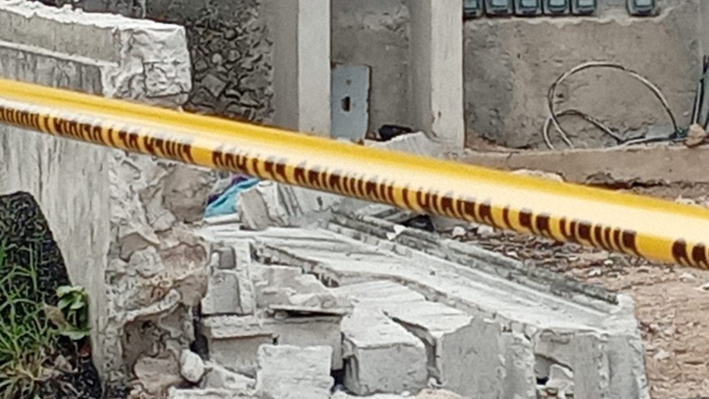 El incidente se registró en la avenida Temozón con calle 8, donde varios trabajadores demolían una antigua estructura para dar paso a un nuevo muro.