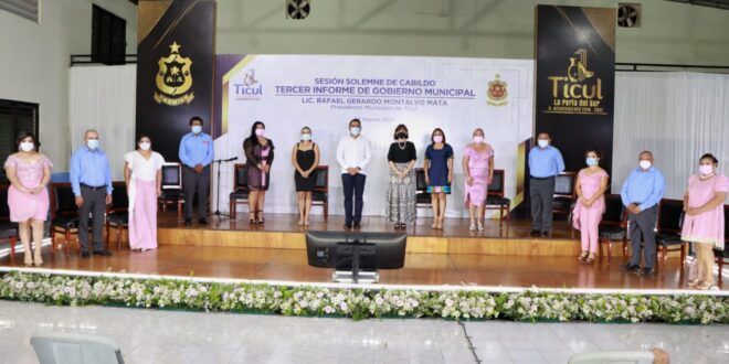 “Tenemos un Ticul muy diferente al que teníamos hace tres años, es de los pocos municipios que desde el 2019, tienen una instancia municipal de la mujer, San Benito cuenta ya con su comedor comunitario y el de la colonia Obrera se inaugurará próximamente, Yotholín y Pustunich, hoy cuentan con sus parques infantiles, señaló Rafael Montalvo”.