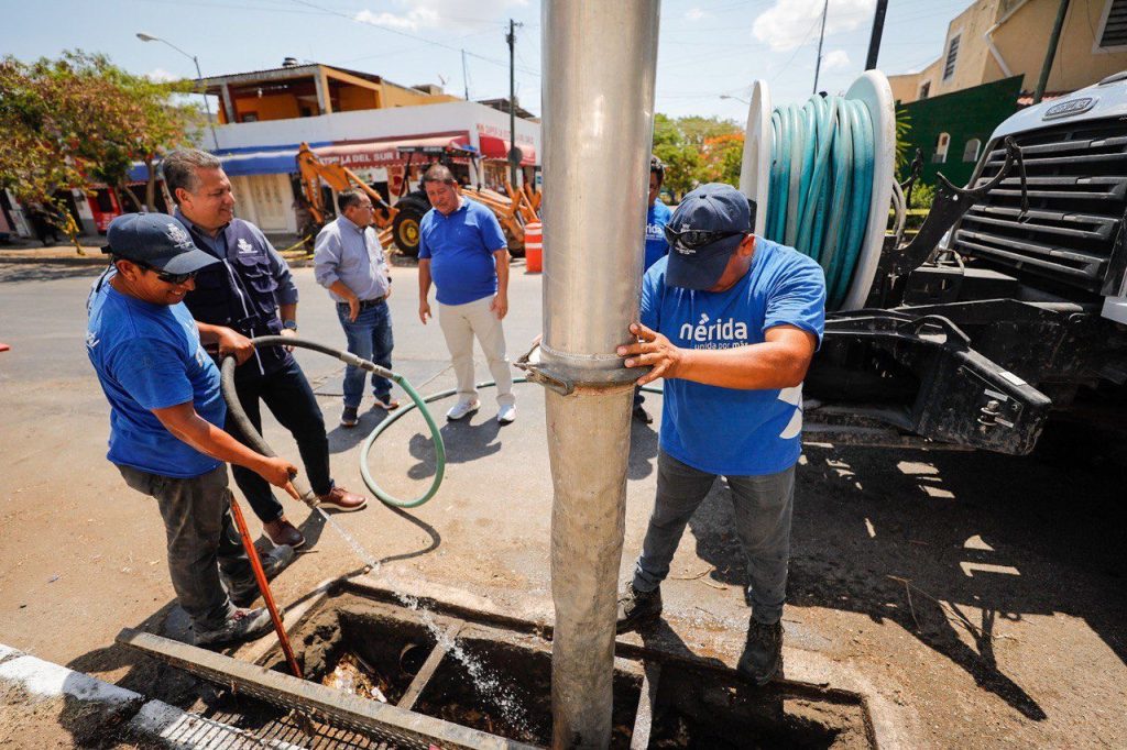 En el mes de abril también se brindó mantenimiento al aljibe ubicado en la calle 34 de Tixcacal, Opichén, el cual tiene una capacidad de 80 metros cúbicos de agua (80,000 litros), y al aljibe ubicado en la calle 60 por 5-B de la colonia Revolución, con capacidad para 45 metros cúbicos de agua (45,000 litros).