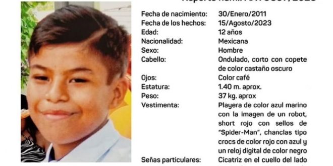 De acuerdo con el reporte número AAYUC97/2023, Ángel Gabriel fue visto por última vez el 15 de agosto en la colonia Salvador Alvarado Oriente, de Mérida, sin que hasta el momento se tenga información de su paradero.
